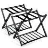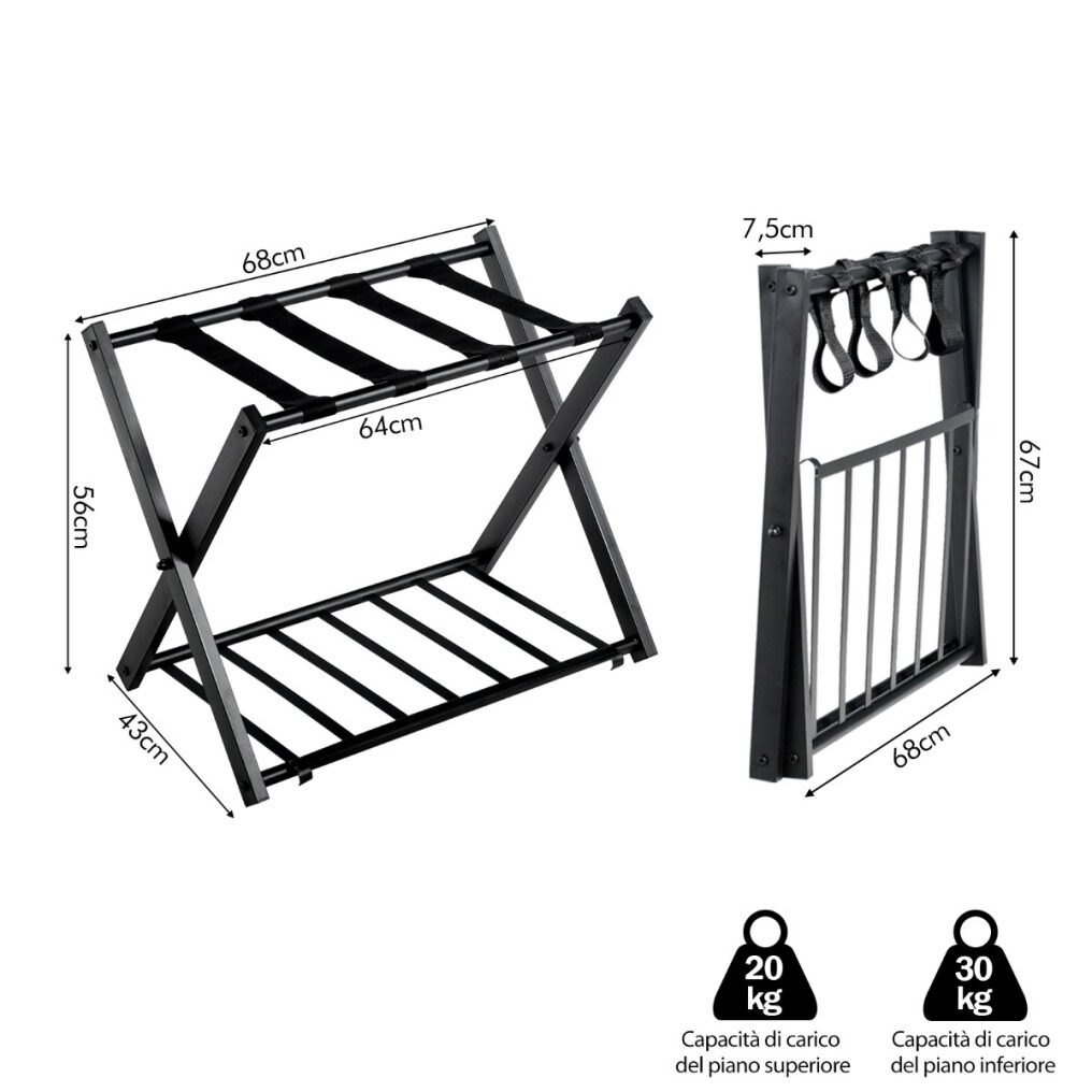 Foldable & compact: Thanks to the foldable structure, the luggage rack can be easily stowed away in a few seconds and can be easily stored in a closet or leaned against a wall. Even repeated and frequent folding is no problem.