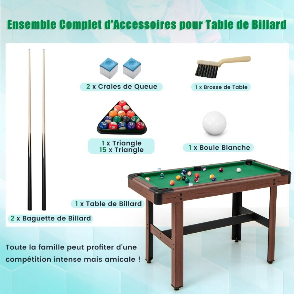 Complete Accessory Set: This full set of billiard table accessories includes a pool table, 2 cue sticks, 2 cue chalks, a table brush, a ball triangle, 15 colored balls, and a white ball. Gather your family or friends and enjoy a fun game of pool together.