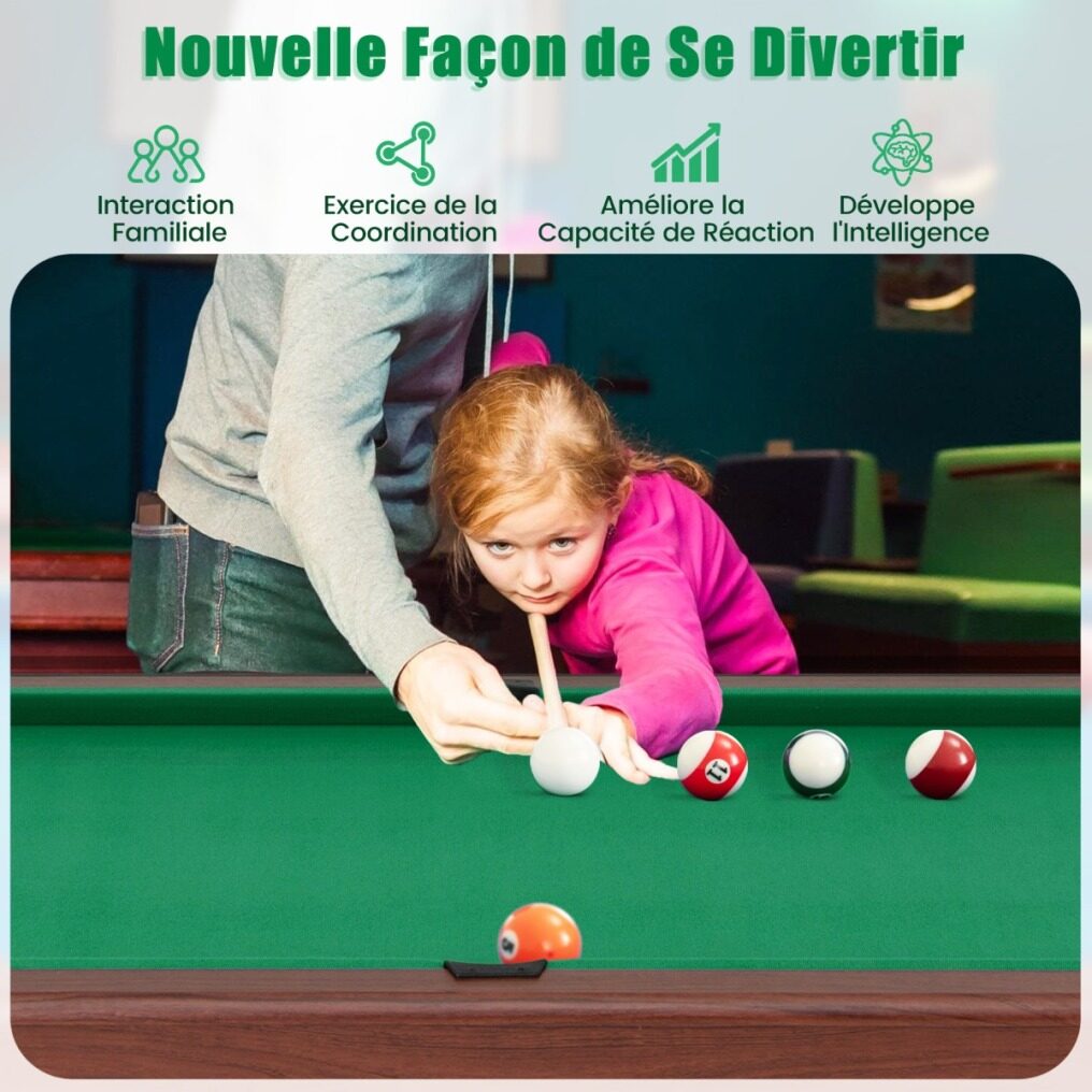 Easy Assembly: Featuring a simple structure and clear illustrations in the user’s manual, the pool table is easy to set up. Not only is it entertaining for the whole family, but playing pool also exercises coordination ability, enhances reaction ability, and develops intelligence.