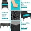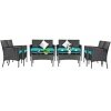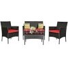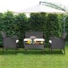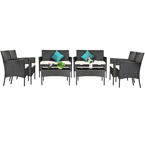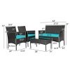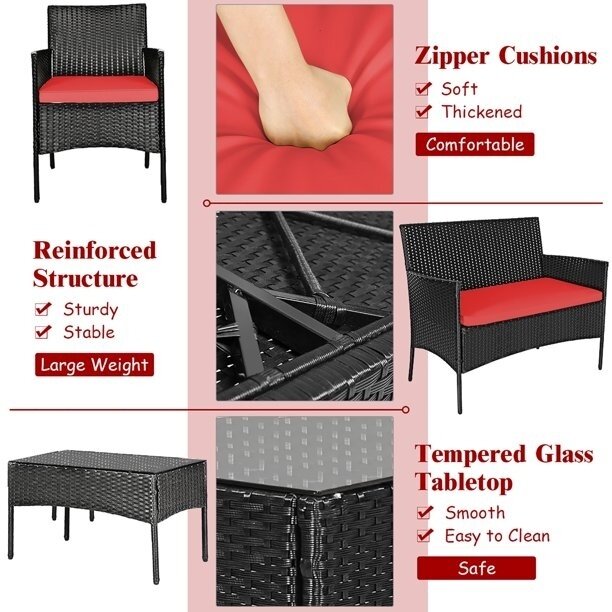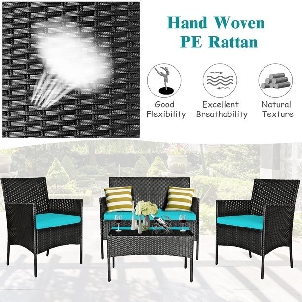 ● 4 Pieces Patio Furniture Set: This furniture set includes 2 single chairs, 1 loveseat and a coffee table. 2 portable chairs can be easily moved to any place for use. And the wide loveseat offers ample space for two people to sit. Most importantly, it can be combined in a variety of ways to meet your different needs.