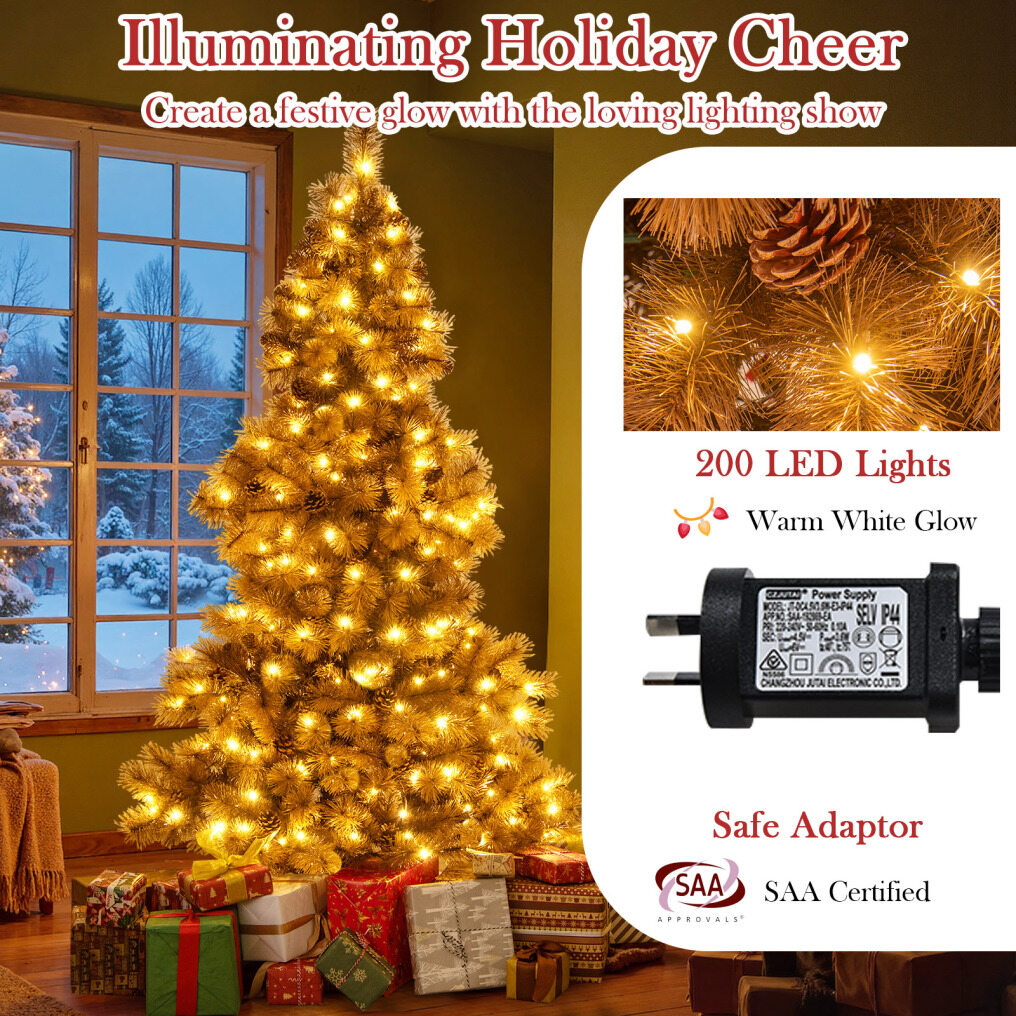 Stunning Lighting Show: Get ready to be dazzled by the warm glow of the Xmas tree! It features 200 warm white LED lights that capture your attention. Moreover, the SAA certified adaptor ensures safety and reliability, so you can enjoy the festive ambiance with peace of mind.