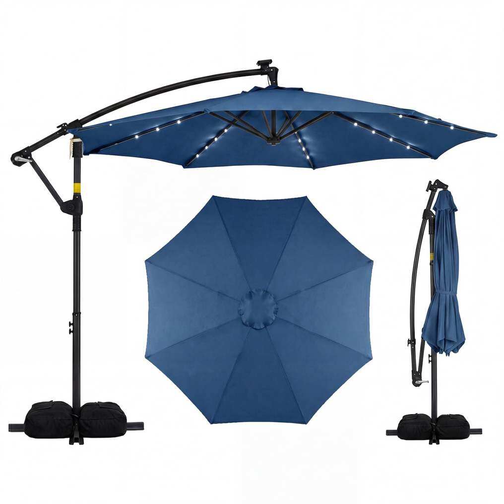 10 FT Solar LED Offset Cantilever Patio Umbrella Hanging Outdoor Market Umbrella-Navy