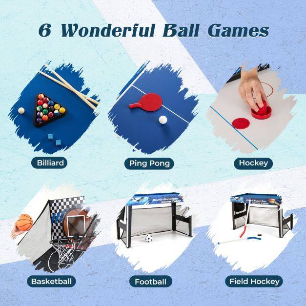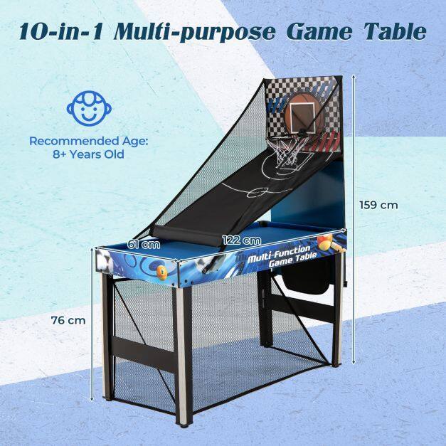 10 Game Options: This combo game table set offers an array of sports options including billiard, hockey, table tennis, shooting, pinball, darts, archery, basketball, soccer, and field hockey. Perfect for family game nights or friends gathering, it brings fun for various age stages.