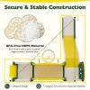 This indoor playground stands out with its telescope, basketball hoop, peek-a-boo window, aisle, slide, ring toss, magnetic whiteboard, crawling tunnel, storage space, and climber. Designed with safety in mind, the handrails and non-slip steps encourage toddlers to explore confidently. The baby climber playset is made with BPA-free HDPE, featuring a burr-free surface and rounded edges to safeguard tender skin. Each accessory, from the basketball to rings and markers, is crafted to fit small hands. Not only does this freestanding slide play set provide hours of physical activity, but it also offers educational benefits by helping children develop motor skills, color recognition, and social skills.
