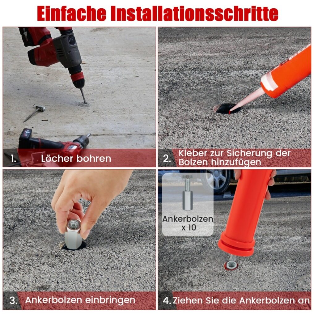● Easy Installation Steps: Installing the safety warning posts in a breeze with this easy installation steps. Simply position the screws, drill holes, add glue to secure bolts,put in the anchor bolts, and tighten them securely. The clear and concise instructions provided ensure a hassle-free installation process, saving your time and effort.