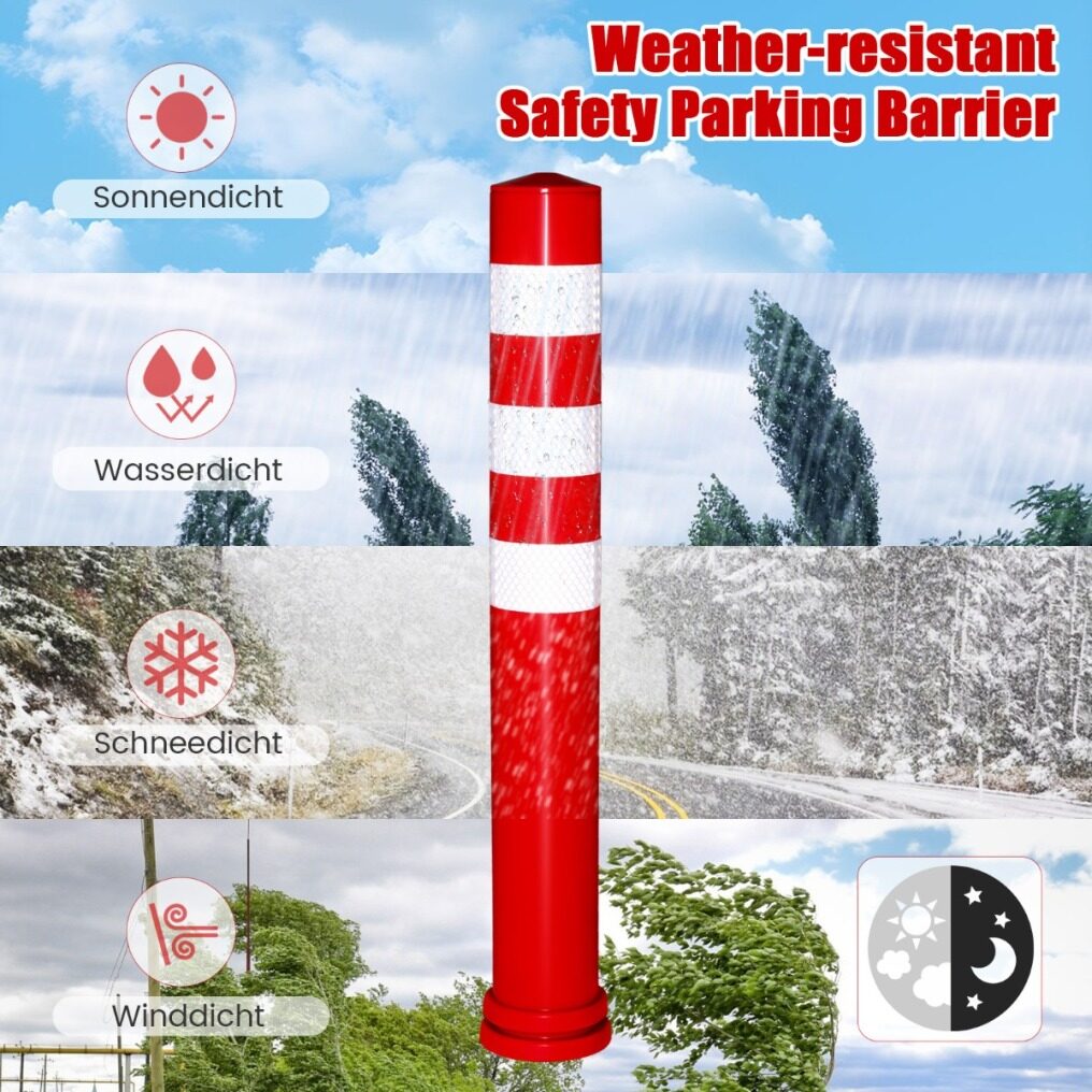 ● Highly Visible Reflective Warning Posts: This highly visible reflective warning posts can effectively increase safety and visibility alert pedestrians and motorists about upcoming cautions. Featuring warning eye-catching red color and equipped with 3 reflective strips, these posts serve as a prominent warning sign and ensure enhanced visibility even in low-light conditions.