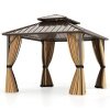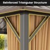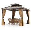 ● Galvanized Double-Layer Roof: The hardtop gazebo adopts a double roof with netting that allows air to circulate, while the extended eave design helps in directing rainwater away from the gazebo. Moreover, the roof is constructed of heavy-duty galvanized metal, ensuring excellent sturdiness and longevity.
