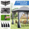 Detachable Mesh Netting: Equipped with all-side removable mesh netting, the heavy-duty gazebo not only protects against pesky small animals but also boosts ventilation and cools hot air. Each netting features a zippered door for effortless entry and exit.