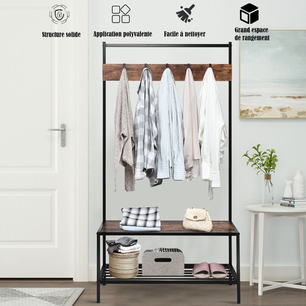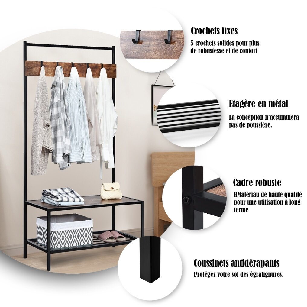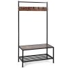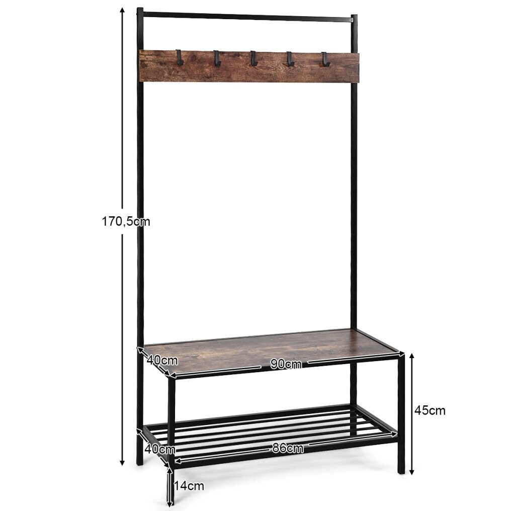 This coat rack features five hooks, a generous bench and a shoe rack, providing you with convenient storage space. Due to the free-standing design, it is able to satisfy your requirements while reducing space occupation. Place it in your hallway, living room, bedroom, or anywhere you need a little more organization. Organize your home and save space at the same time with this functional and versatile hall tree.