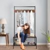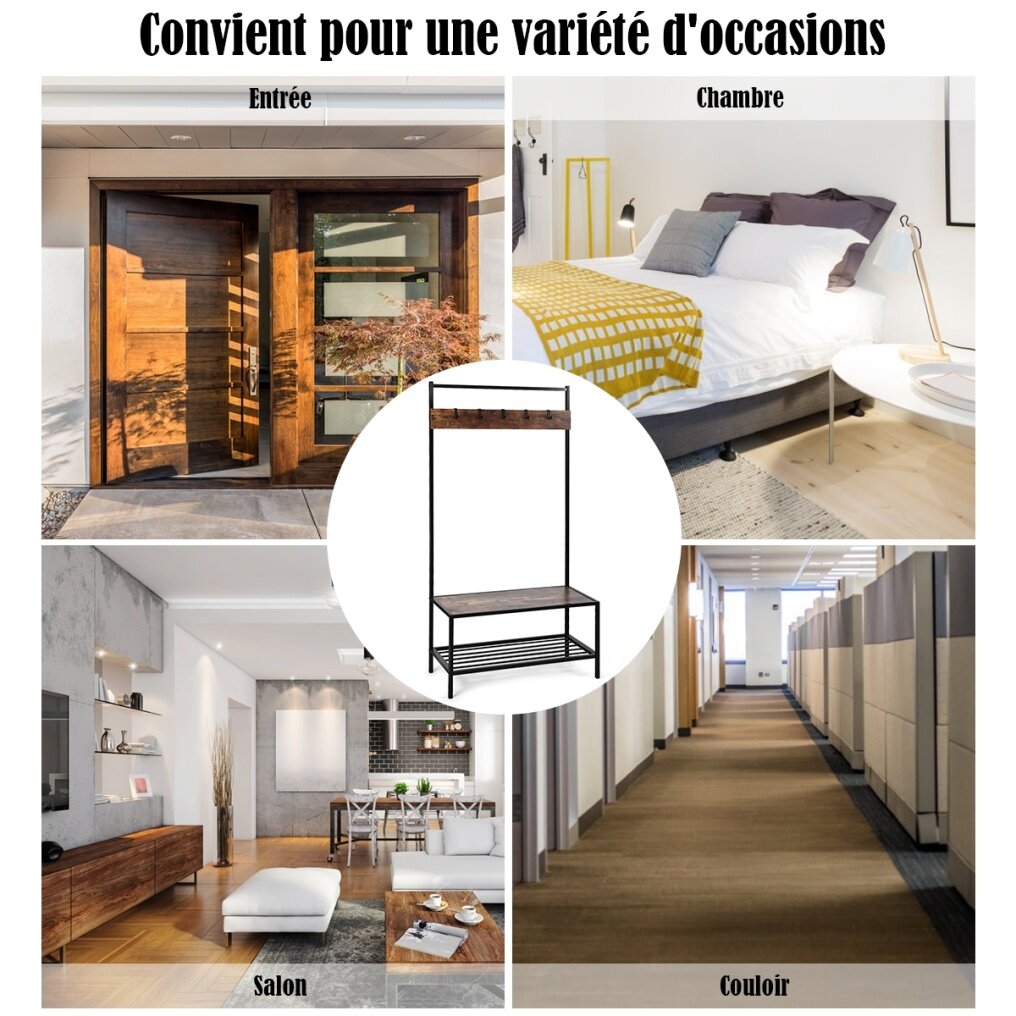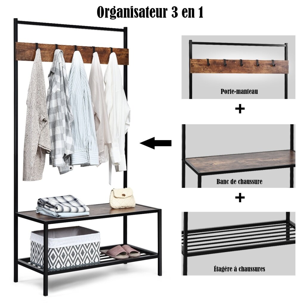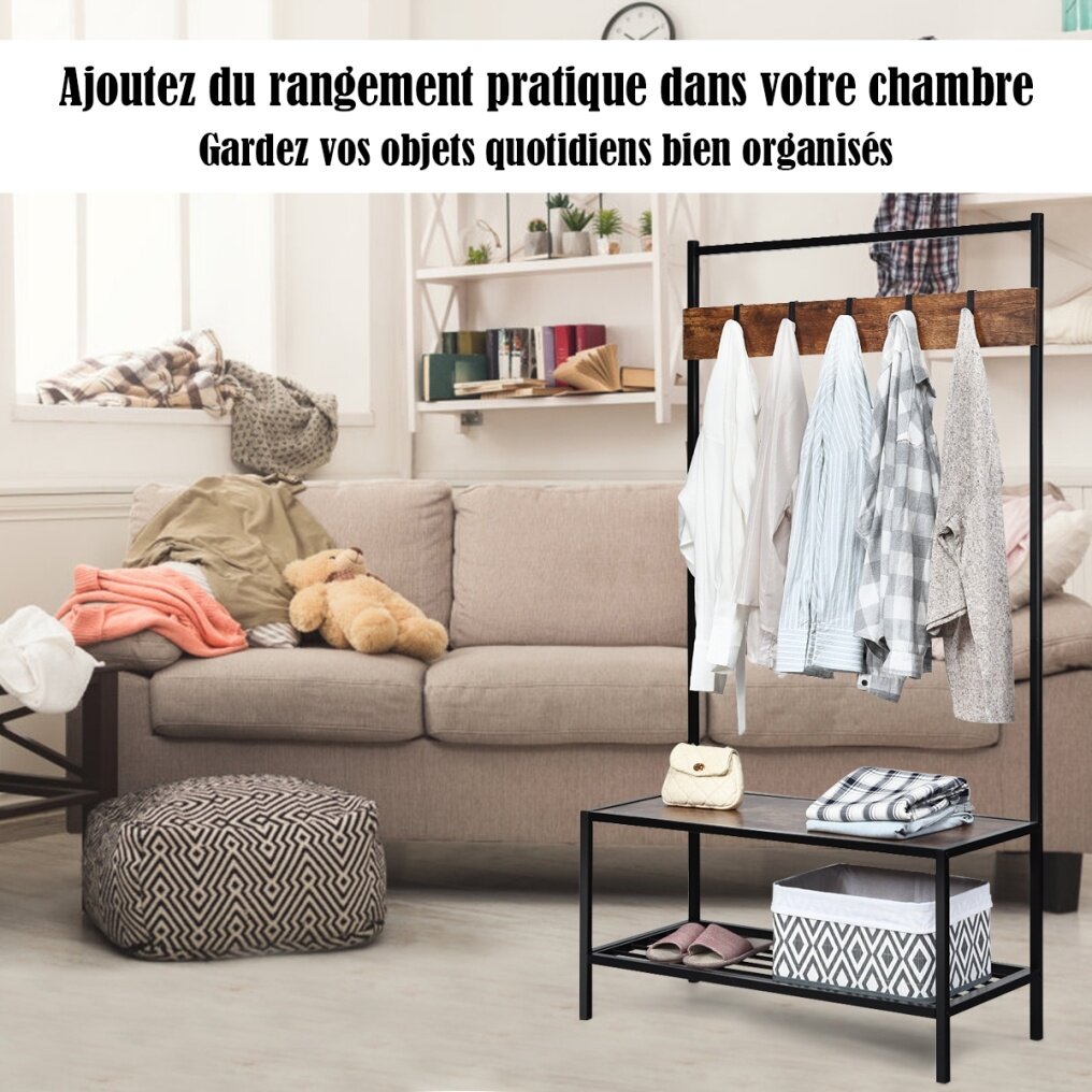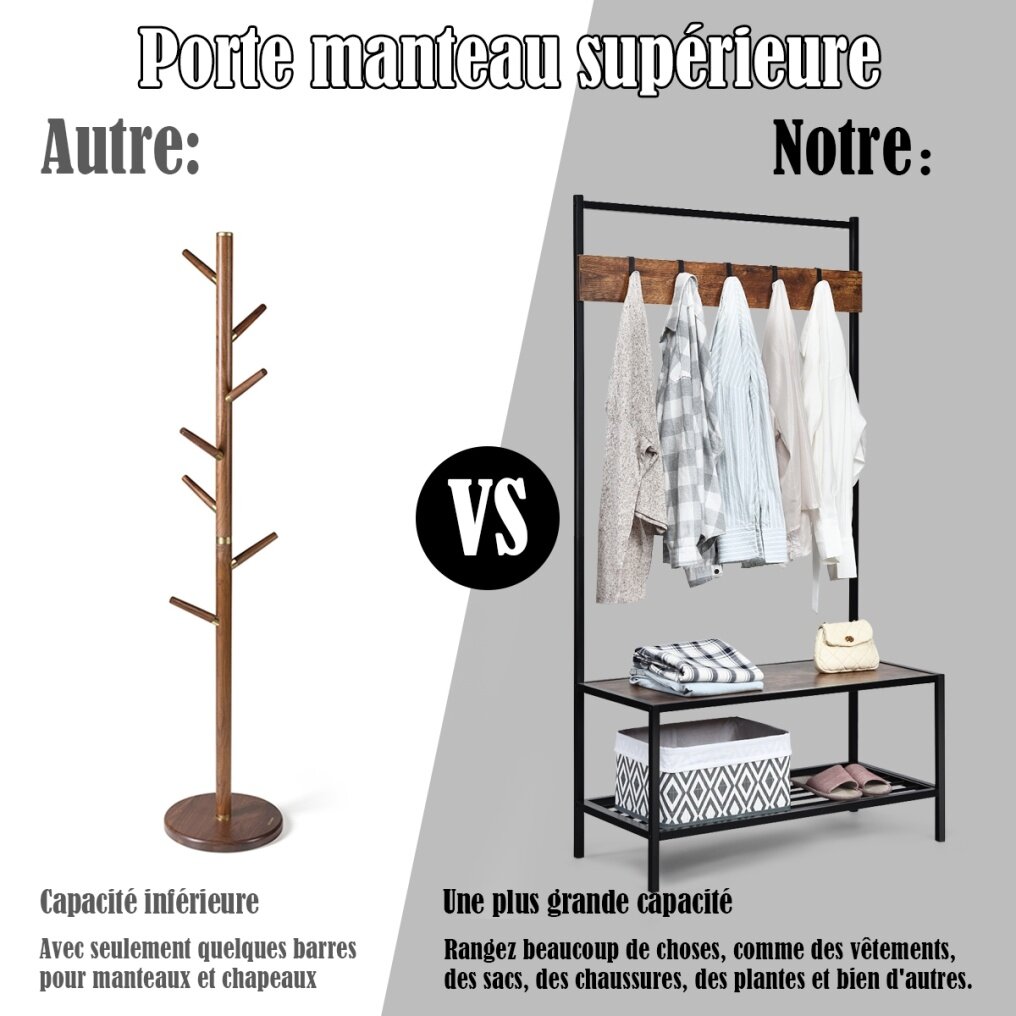 This coat rack features five hooks, a generous bench and a shoe rack, providing you with convenient storage space. Due to the free-standing design, it is able to satisfy your requirements while reducing space occupation. Place it in your hallway, living room, bedroom, or anywhere you need a little more organization. Organize your home and save space at the same time with this functional and versatile hall tree.