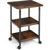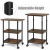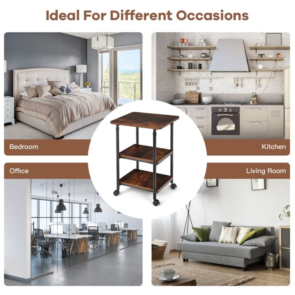 The 3-tier adjustable printer stand will be a perfect choice in your office, classroom and home. With adjustable height, the printer stand can be set at your desired height. 360° Swivel casters allow you to move the printer trolley around flexibly without scratching floor and 2 casters with brakes help you keep the printer stand in position on occasion. Made of heavy-duty steel pipes and thickened engineered wood, the printer cart is sturdy enough to support heavy printer, projector, let alone books and copy paper. Different kinds of office supplies can be placed on the board shelves to keep what you want within arm’s reach while freeing up more work space. Bring the rolling printer stand to your home office, so there is no need to transport printer supplies from one room to another room anymore.
