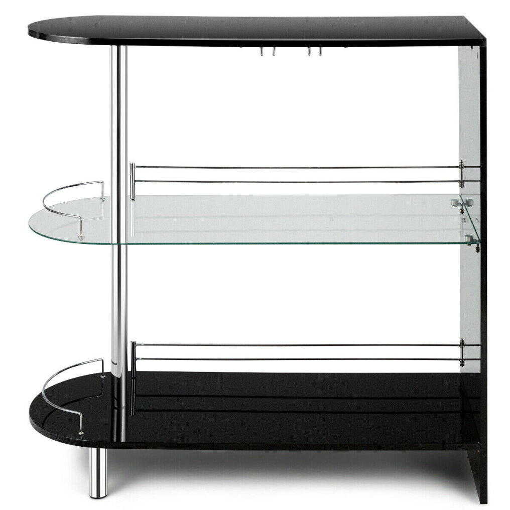 Equipped with 2 glass holders and extra two shelves, this unit provides convenient storage space for all of your needs. Made of a sturdy metal frame and premium tempered glass, it is durable and sturdy enough to hold your items. The elegant look makes it match well with any interior decoration. Apart from adding a unique modern touch to your room, it also creates a relaxing atmosphere for drinking with your friends.