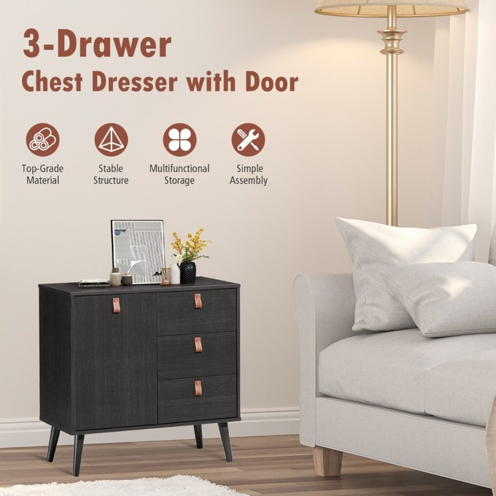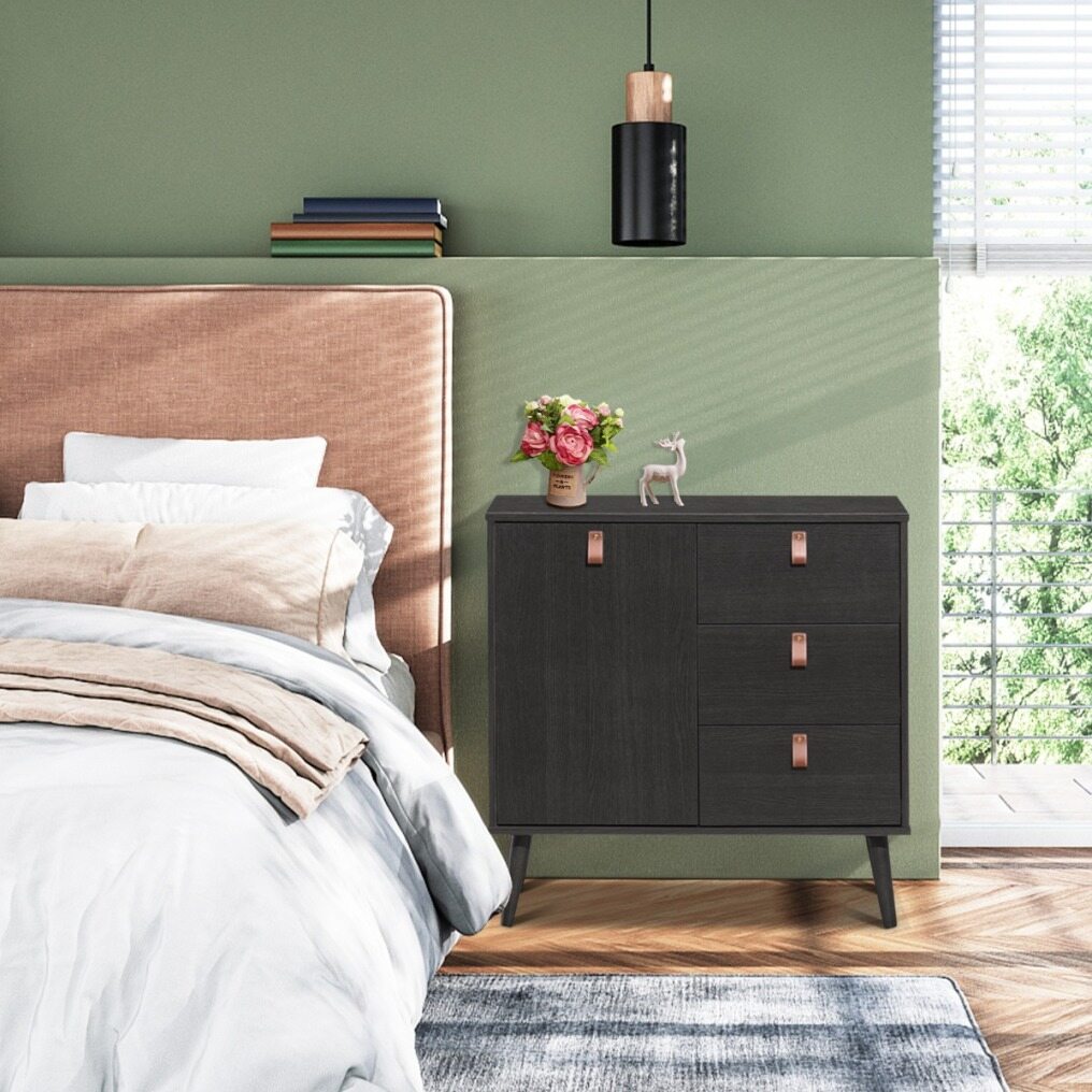 With 3 large drawers and a side cabinet, our chest of drawers can perfectly accommodate all your daily necessities, including clothes, cosmetics, digital products and more. In addition, the inner shelf of the side cabinet can be adjusted in three positions, making it easy for you to store different sizes of items. The wide top is perfect for holding alarm clocks, coffee mugs and other frequently used items. The anti-tilting device ensures the cabinet's safety, while the smooth glides and convenient handles make it easier for you to reach the items inside. You can put it in your living room as a storage cabinet or in your kitchen as a cupboard. The elegant shape makes it not only functional but also a decorative piece of furniture with aesthetic value.
