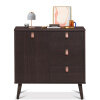 Featuring three drawers and a large cabinet with an adjustable shelf, the storage cabinet meets your different needs for storing and makes a good use of space. Crafted of thickened engineered wood with premium durability, the storage cabinet will spend many years of time with you. Whether be used as a display cabinet in your living room, or act as a console table in the study, the 3-drawer chest will be an eye-catching addition for its elegant appearance. Come and buy the storage cabinet quickly and I believe it's a perfect addition for your room!