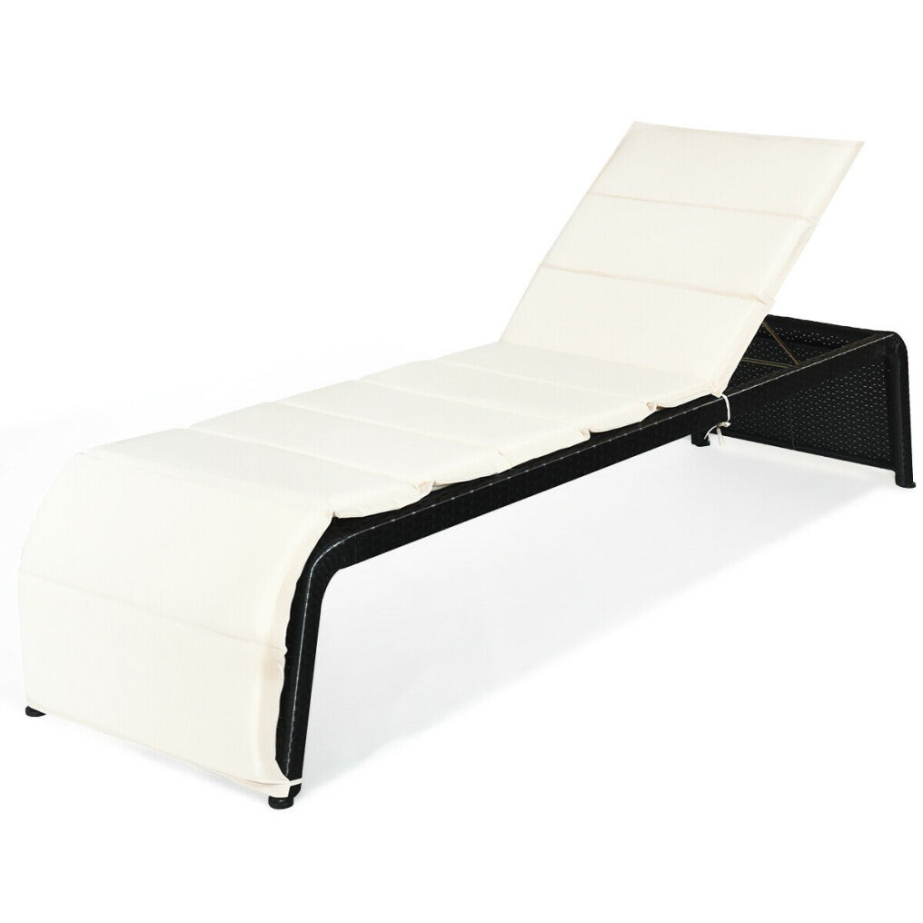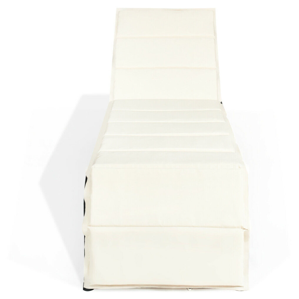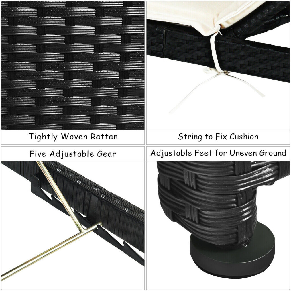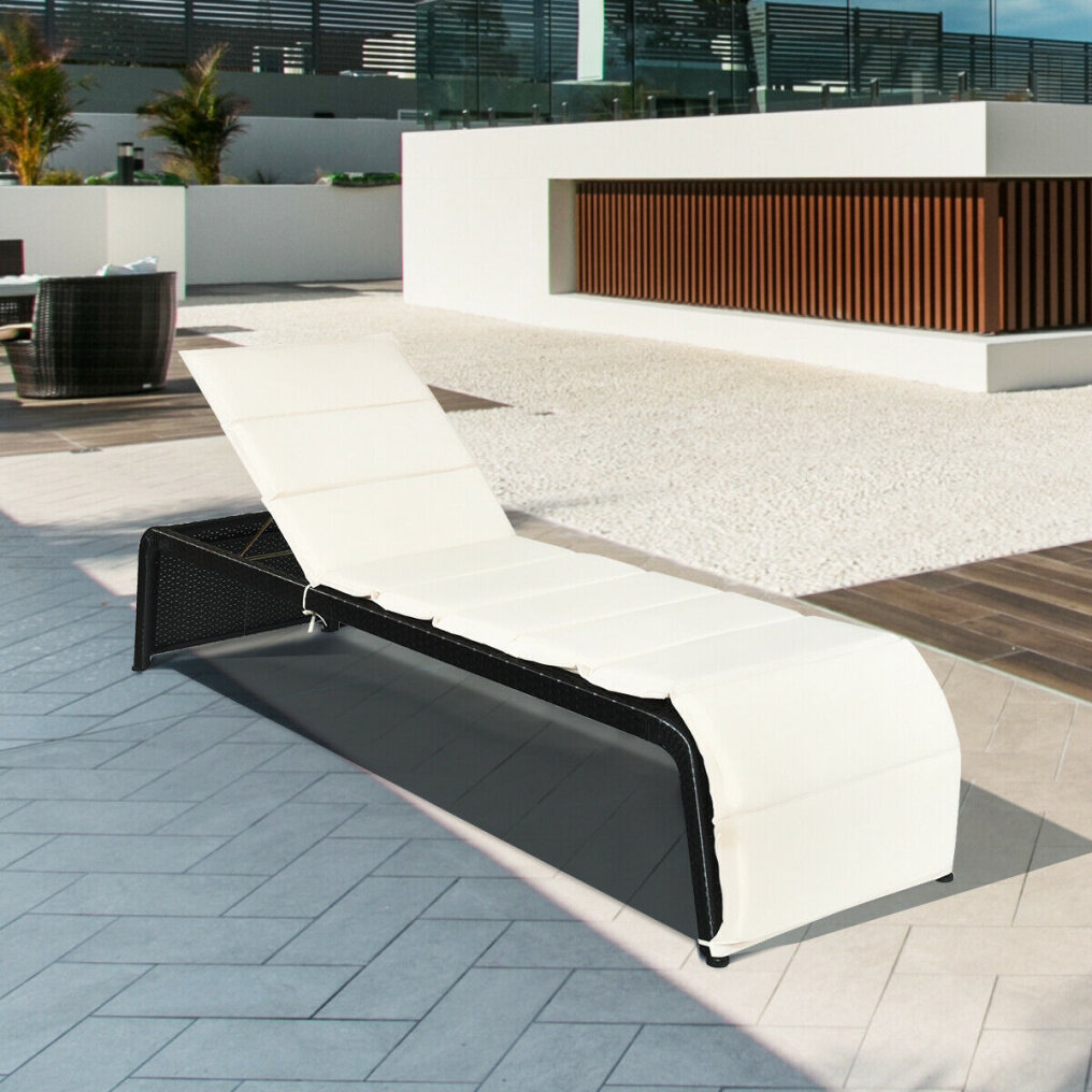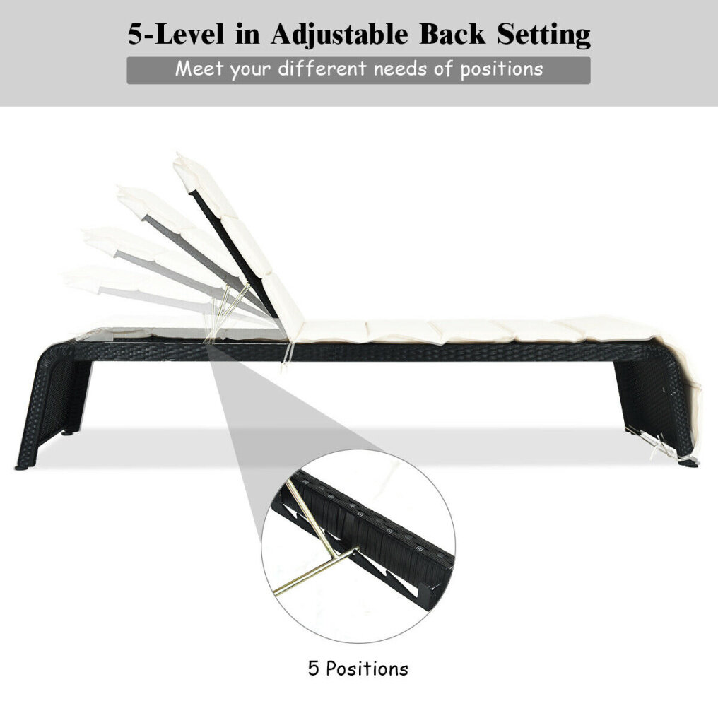 Patio Rattan Lounge Chair Back Adjustable Chaise Recliner with Cushions-White