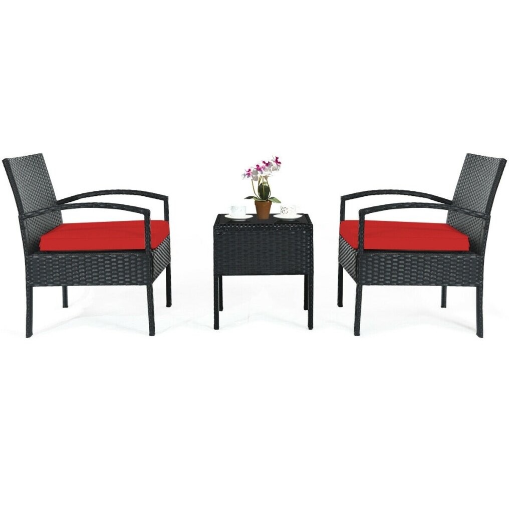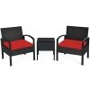 3 Pieces Outdoor Rattan Patio Conversation Set with Seat Cushions-Red