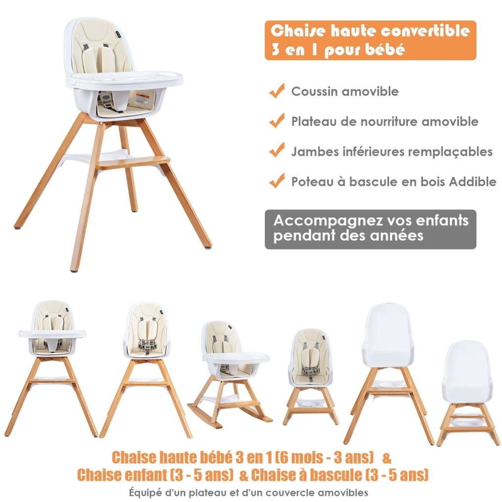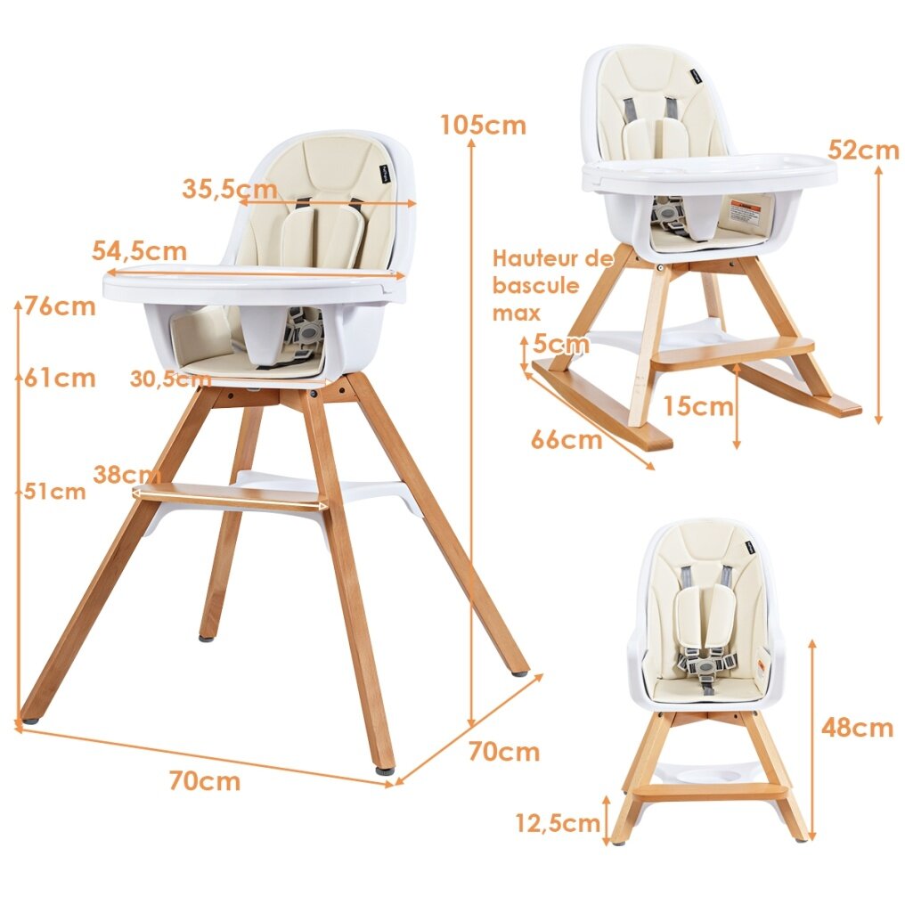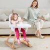 You must feel tired to feed your baby when he or she is active and constantly moving around. Now, this baby chair can handle this problem. With a 5-point safety harness, your baby can steadily sit on the chair and enjoy a meal. The tray is detachable, featuring a double-decker for multipurpose use. As the legs are made from beech wood material, you can rest assured that your baby won't fall. It is also with a high price-quality rate as it can be served as an infant high chair, sleeping rocking chair, or toddler feeding chair, meeting your diverse needs.