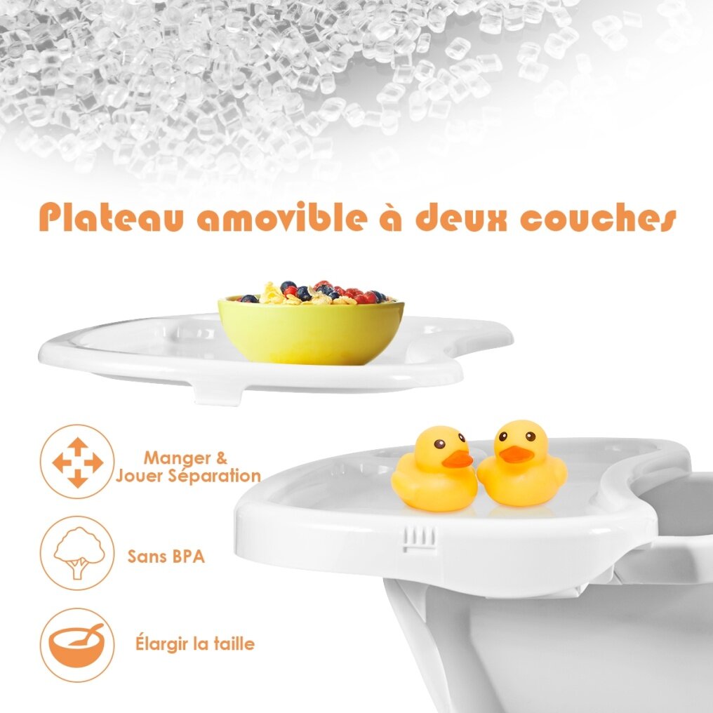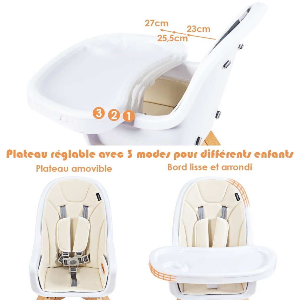 - Detachable 2-tier tray with three adjustable positions to fit with kids of different ages