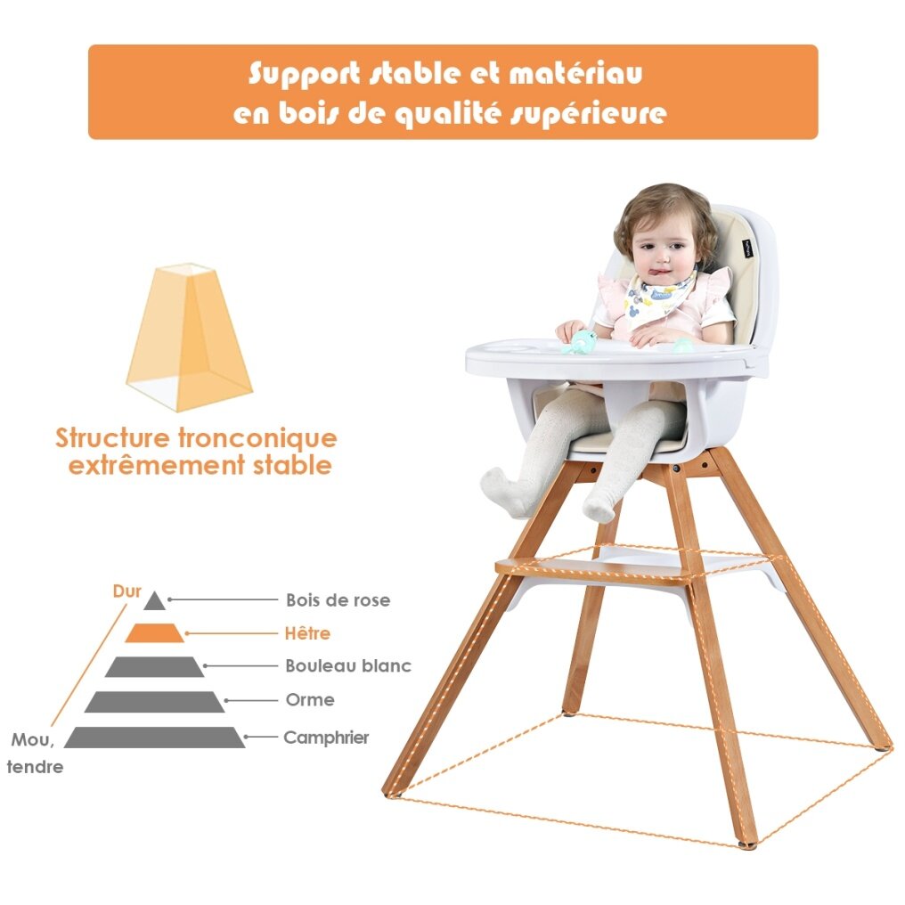 - Higher chair for kids of 6 months to 3 years old while lower chair for 3-6 years old