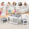 Ample Toy Storage Space: The entertainment place under tabletop and 2 fabric boxes under chairs provide kids a large storage capacity to organize their books and toys. In addition, the sided groove and handles help kids easy to open and pull out.