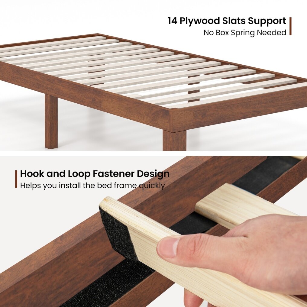 ● Solid Wood Bed Frame: This premium bed consists of a 100% solid rubberwood frame and a poplar support slat, which reinforces reliability and durability. With 6 legs on both sides of the bed, the weight and pressure of the whole bed frame can be extended evenly to each leg.
