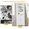 Made of premium P2 MDF board, this bathroom cabinet is stable and durable for a long lasting use. The three-layer open shelf and a closed cabinet provide you with sufficient storage space, allowing you to organize towels, shower gel, books and other supplies in an orderly manner. The elegant and modern appearance is perfect for blending with your bathroom, bedroom and living room.
