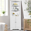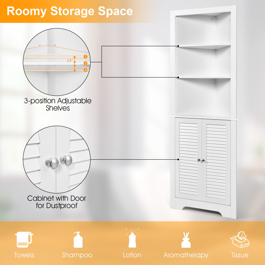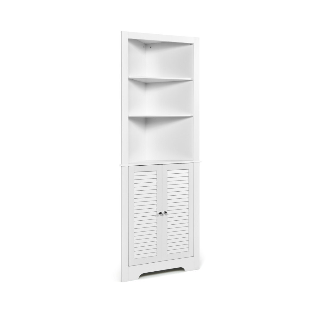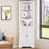 This multifunctional corner storage cabinet with three layers of open shelves and closed cabinets will provide you with enough vertical storage space to place various items.
