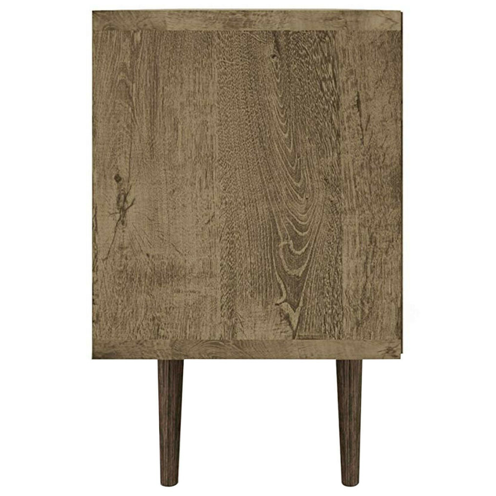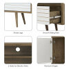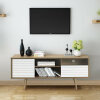 The modern TV stand adds flair to your living room or bedroom. Made of high-quality chipboard and MDF, this TV stand with excellent quality provides long-time services for you. Additionally, benefitting from four splayed legs, this TV cabinet has unparalleled stability. Even better, this TV stand features three open shelves, a cabinet, and a large drawer for a variety of storage options. Besides, the spacious tabletop is large enough to hold up 65 inches TV. More, two cable management holes are designed to keep the cable tidy. Except for that, it features two anti-tip brackets to keep the TV stand stable. It is worth mentioning that fashionable style can decorate your room.