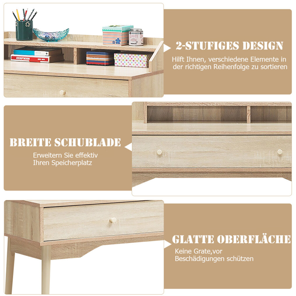 ● 2-Tier Hutch Makes Table Top Tidy: 2-Tier bookshelf is ideally sized for the lamp, alarm clock, photo frame and other necessary items. 2 Edging compartments are convenient to put books vertically to save more space. Classifying your frequently-used items on the hutch can help you make tabletop more tidy.