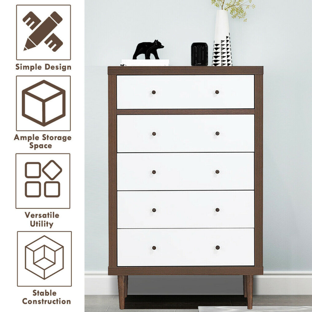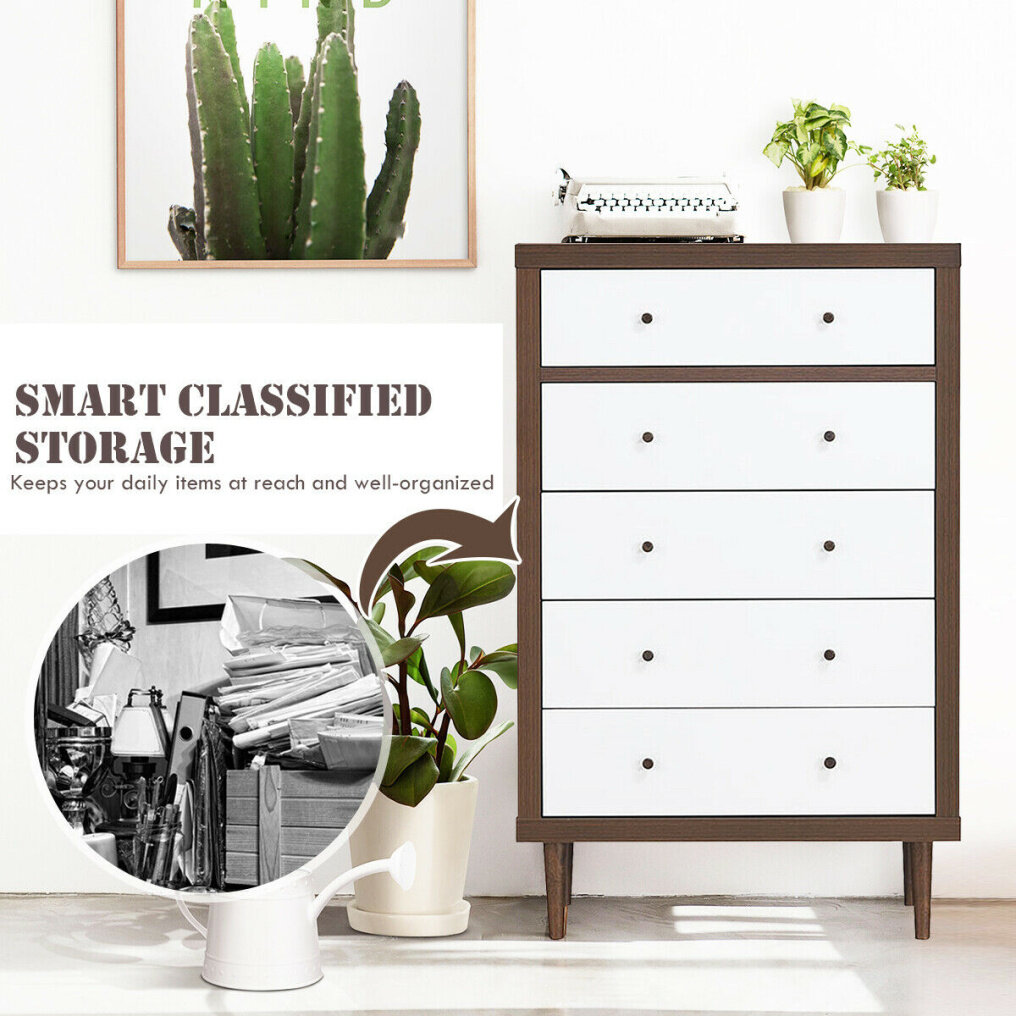 ● Fusion of Modern Times and Mid-Century: This cabinet combines the walnut frame and white drawers, our chest has a simple but characteristic design which works in any setting. The color contrast design adds sense of aesthetics for your home so it is suitable for placing in your living room, kitchen, bedroom or study. The glossy finish creates a fresh look, perfectly blending to any corner of your bedroom, bathroom, study room or hallway to decorate your home.