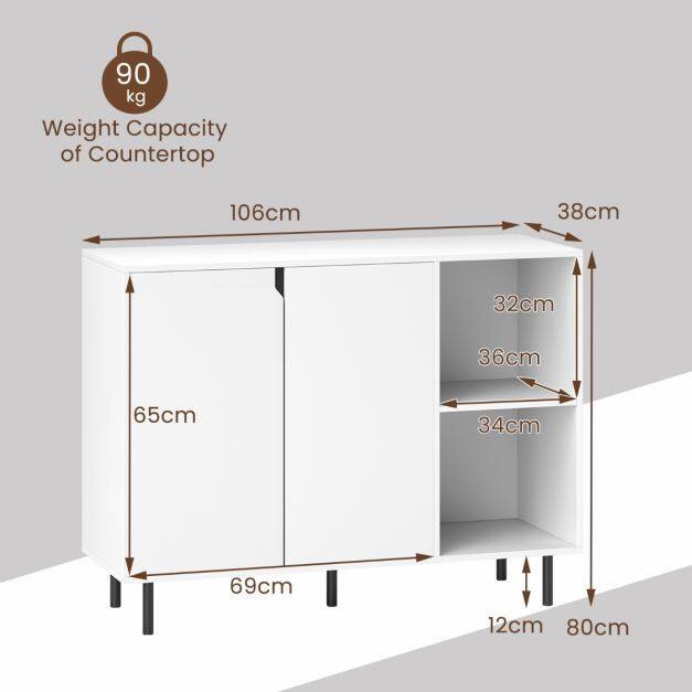 Sufficient Storage Space: This functional buffet sideboard features a 106 x 38cm countertop, 2-door cabinet with shelf and 2-tier open shelf. With ample storage space, the storage cabinet is perfect for organizing dinnerware, meals and so on.