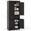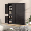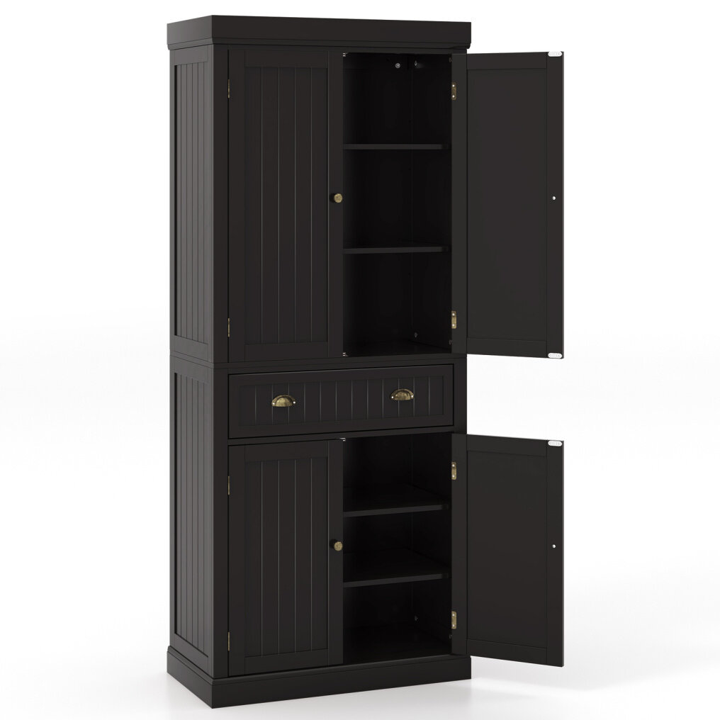 Not only can the cabinet be placed in kitchen as a cupboard, but also it is ideal to be a normal cabinet in your bedroom, living room and hallway to add a functional storage option. The storage cabinet has two double-door cabinets and one large center drawer which will provide spacious space for your items such as dishes, books and bottles. And four shelves come with the cabinet that all can be detached or adjusted in three positions. Made of premium density board, the cabinet is sturdy and durable foe long time using. In addition, the door is equipped with magnetic button to prevent items from falling and round handle for opening and closing easily.
