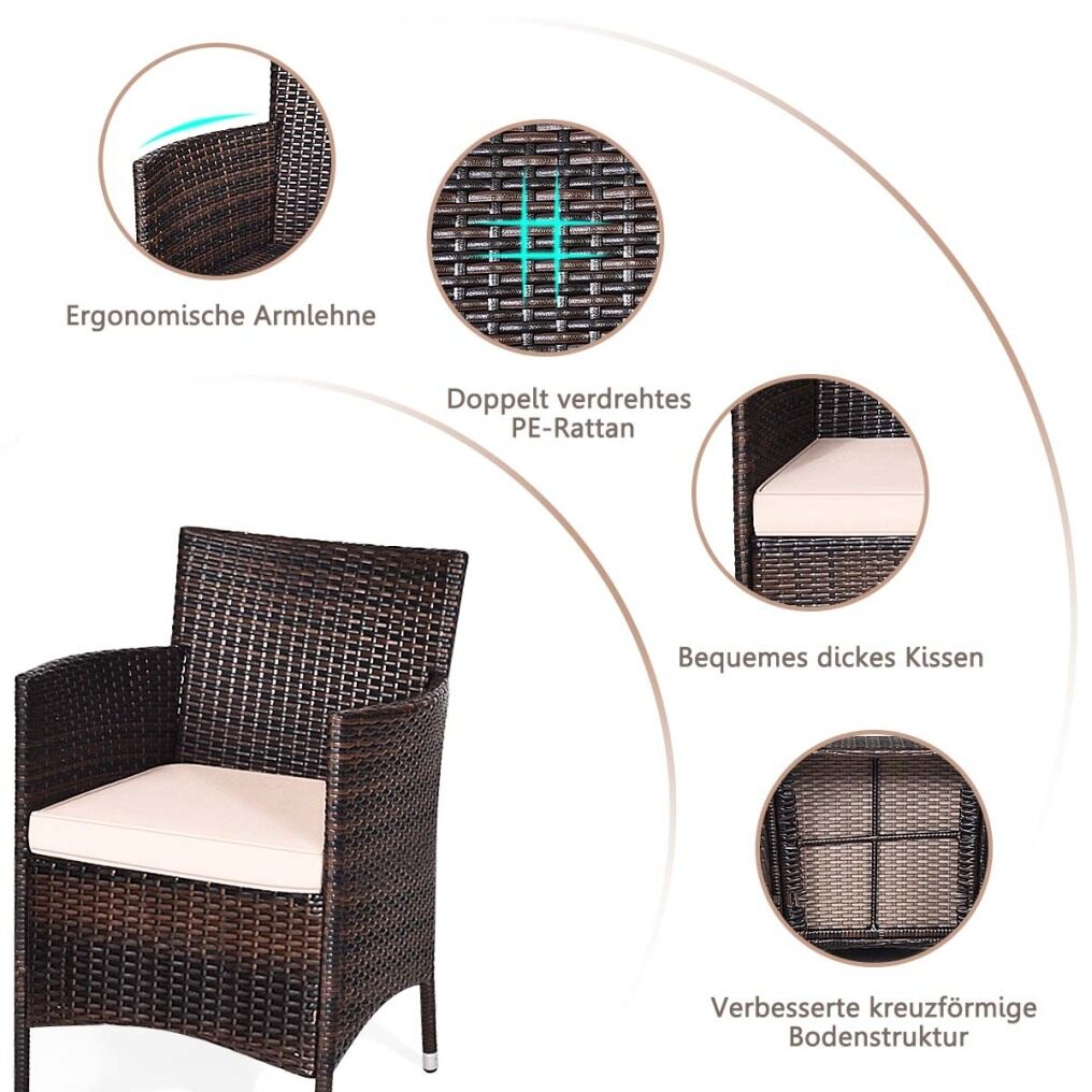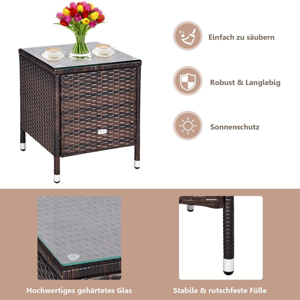 Contemporary elegant appearance matches the ergonomic design to blend into your unique home decor. The wicker furniture set with tempered glass table features the high-quality all-weather wicker and exquisite weaving technique in order to stay beautiful after years of use and aims to bring you a premium satisfaction of relaxation and romance when you are entertaining guests or simply enjoy yourself under the wonderful scene.