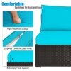 ● Durable and Sturdy Construction: Made of high-quality PE wicker, the dining set is weather-resistant and durable enough to stand for the test of time. Besides, the dining table is constructed of premium acacia wood, which ensures sturdiness and wears resistance. Plus, this set is in a solid steel frame, which provides excellent load-bearing capacity and powerful support.