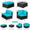 ● Size Information of Patio Dining Set: Table size: 43.5 x 43.5 x 29.5(L x W x H), chair size: 20.5" x 21.5" x 34" (L x W x H), ottoman size: 16" x 16" x 14" (L x W x H), height from floor to seat: 16", height from floor to armrest: 25.5", thickness of cushion: 2", table weight capacity: 170lbs, chair weight capacity: 400lbs, ottoman weight capacity: 400lbs, diameter of umbrella hole: 2.16".