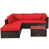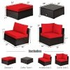 ● Durable and Sturdy Construction: Made of high-quality PE wicker, the dining set is weather-resistant and durable enough to stand for the test of time. Besides, the dining table is constructed of premium acacia wood, which ensures sturdiness and wears resistance. Plus, this set is in a solid steel frame, which provides excellent load-bearing capacity and powerful support.