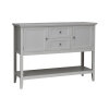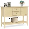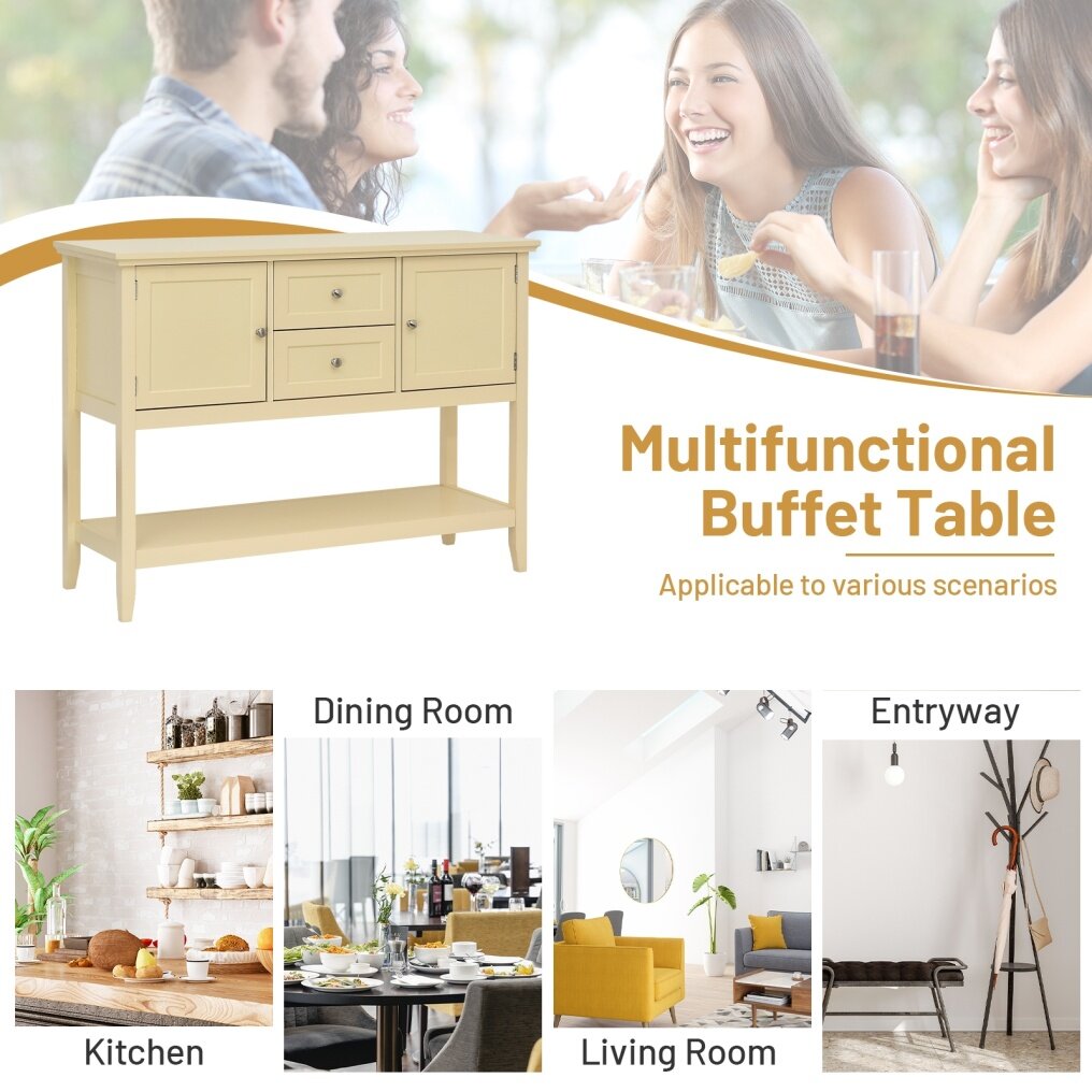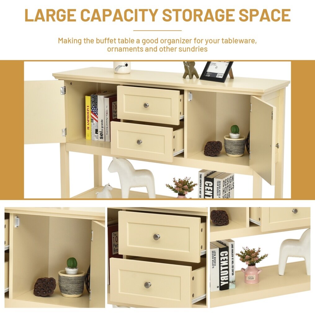 Are you still looking for a practical sofa table with high attractiveness? Our buffet sideboard will be the perfect choice. Polished surface and elegant style show an eye-catching looking, which is ideal for decorating all occasions. 2 cabinets and 2 drawers provides ample storage space with safe protection. Also, the spacious tabletop and bottom rack help to display collections in a better way. This narrow console table allows you to organized items orderly while saving space. Made of premium MDF and solid wood, this sofa table ensures high stability, durability and sturdiness. The table can load up to 70kg without wobbling. In a word, this modern buffet sideboard is a necessary addition to home, office and café store.