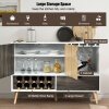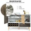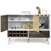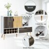 A storage cabinet with 3-position adjustable shelf can store various kitchen utensils of different heights. Wine racks with 3" diameter and wine glass holders satisfy the storage needs of wine lovers. And it is equipped with a large drawer and an open shelf to provide extra space for other supplies. What's more, 5 sturdy pine legs give strong support and good stability. With exquisite workmanship and modern style, the sideboard is suitable for kitchen, living room, bar, restaurant and so on. Are you still bothered by the mess in the kitchen? Our buffet sideboard is a good organizer to make the kitchen tidy and orderly.