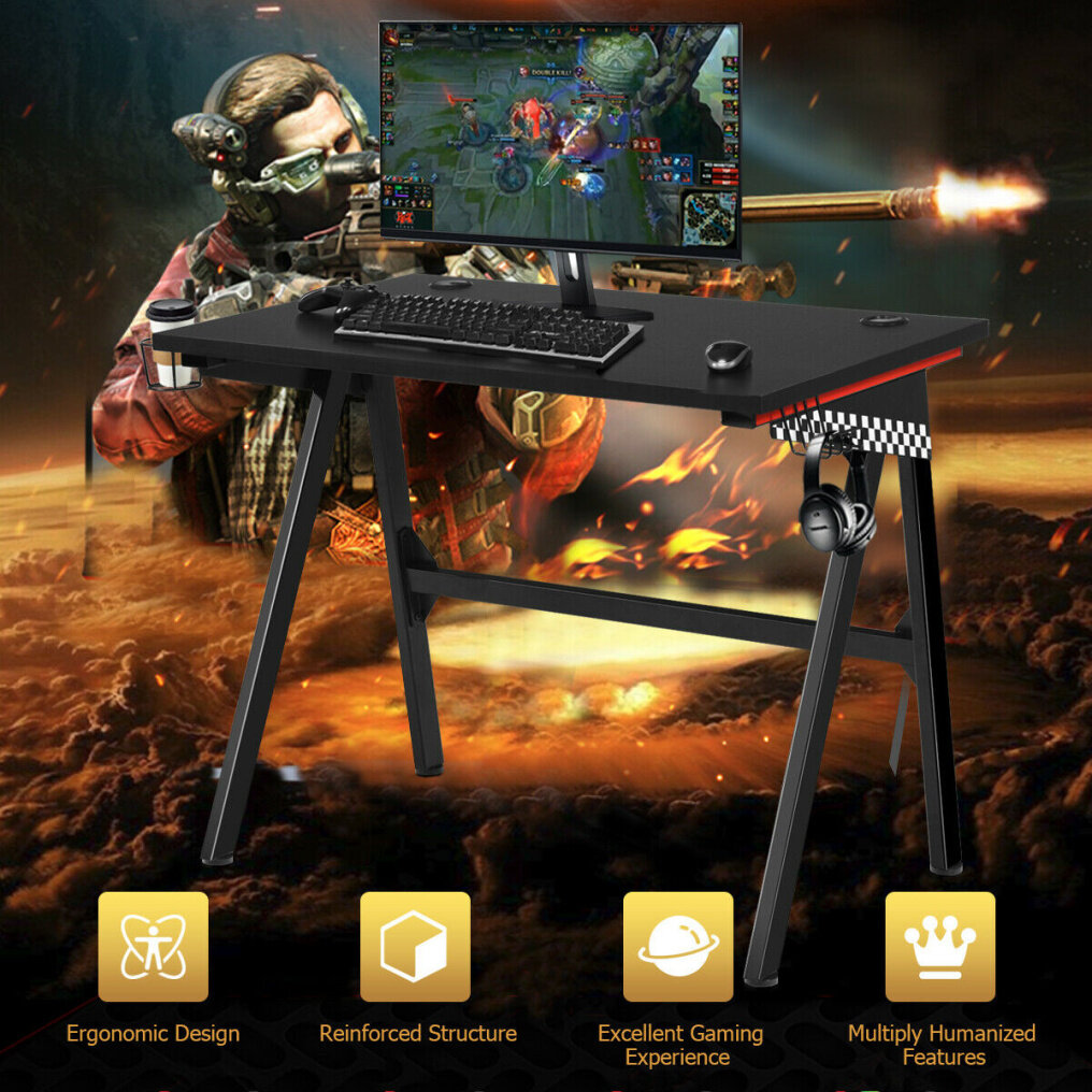 Wide desktop provides a large space for holding all your gaming gear, including keyboard, cup, PC, magazines. And it is water-proof and more durable for better use. Specially comes with a cup holder, a headphone hook and 2 cable management grommets, the desk can perfectly keep your necessities in order and make it easier to get. Ergonomic construction and size offer a more comfortable experience without fatigue.