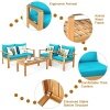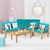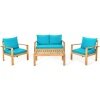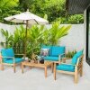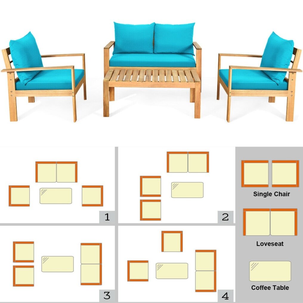 ● Selected Acacia Wood: Crafted from the premium acacia wood, this outdoor 4 seater conversation set greatly reveals the nature elements to your home décor with clear wood texture. The wooden coffee table is treated to withstand even the harshest of seasons, ensuring your outdoor furniture looks great all year long.