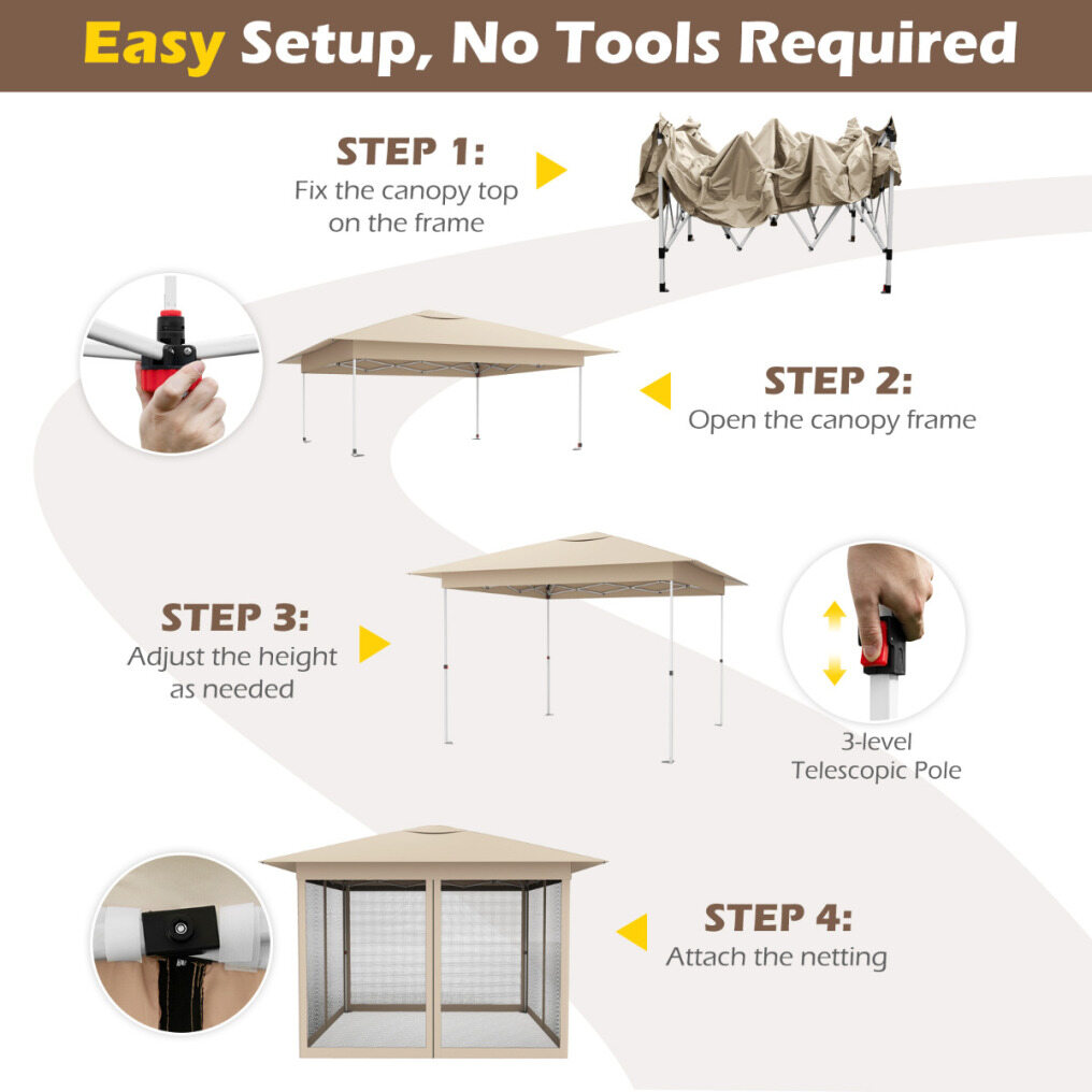 ● Effortless One-Person Setup: Featuring a one-hand center lock system, this outdoor pop up canopy makes it easy and effortless to secure or release the trusses within minutes without any tools. Plus, the pinch-free buttons prevent finger injuries for a truly stress-free assembly.