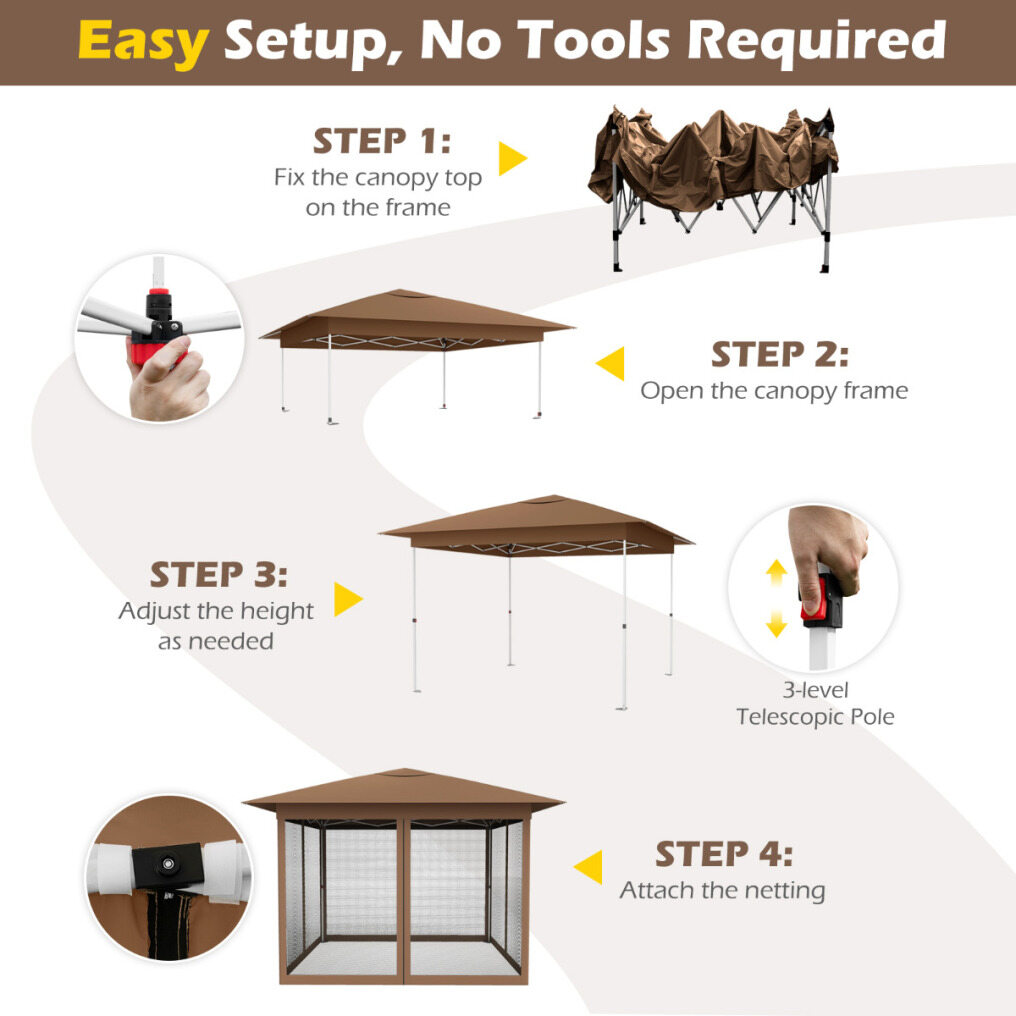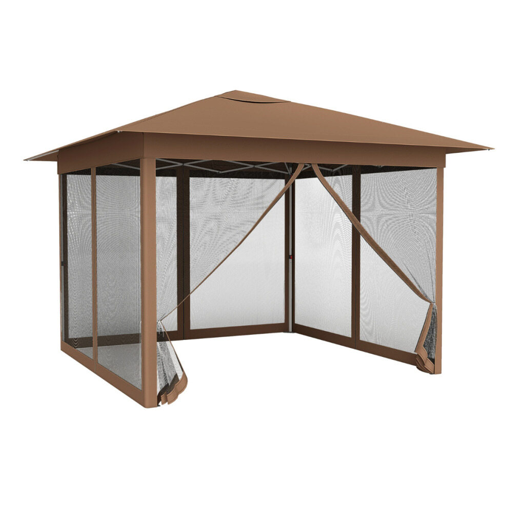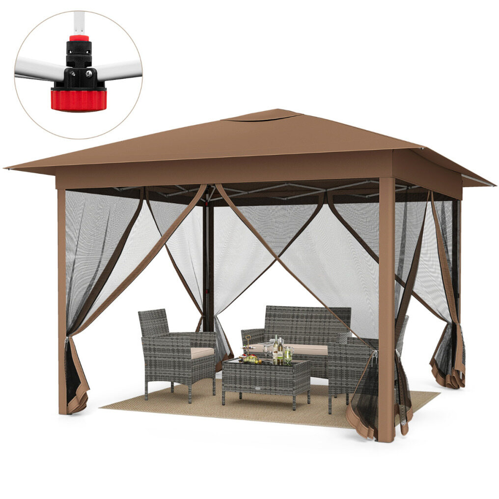 11.5 x 11.5 FT Pop-up Canopy Instant One-Person Setup with Mesh Screen Netting-Brown