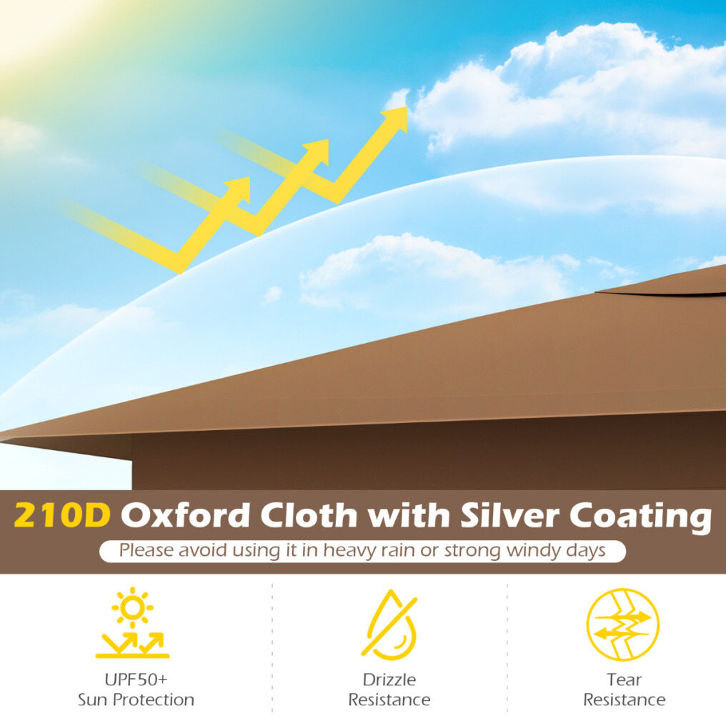Excellent Weather Protection: This patio gazebo is expertly crafted of 210D Oxford cloth with silver coating, ensuring UPF50+ sun protection, drizzle resistance, and high tear resistance - providing lasting shelter and comfort.