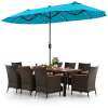 ● Expansive Shade Coverage: With a length of 15ft, this double-sided patio umbrella provides ample shade for a comfortable dining environment. The umbrella base ensures stability, making it a reliable addition to your outdoors. Moreover, the hand-crank mechanism allows you to easily open or close the umbrella without effort.