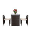 Made of steel frame and durable PE wicker, this table set is sturdy and strong enough to support heavy weight. With an easy-to-clean tempered glass tabletop and 2 chairs with soft sponge cushions, it ensures comfort and long-lasting use. Equipped with hook and loop fasteners, the cushions are easy to remove and clean. Our patio furniture set can be stored into a compact size for space saving. And the simple yet stylish design is perfect for your indoor or outdoor space such as living room, kitchen, garden, patio, poolside, porch, etc. With this set, you will enjoy a happy time with your families or friends.