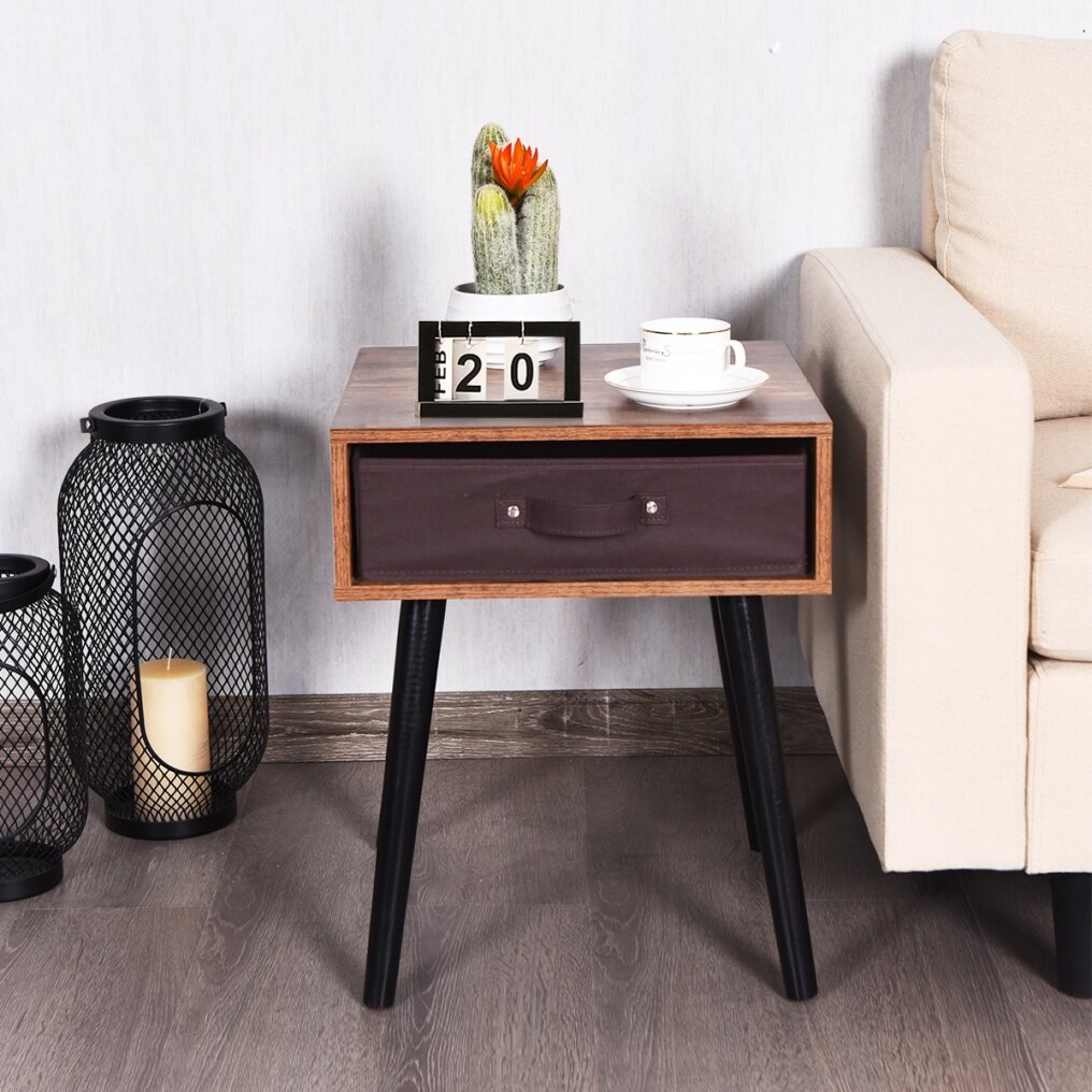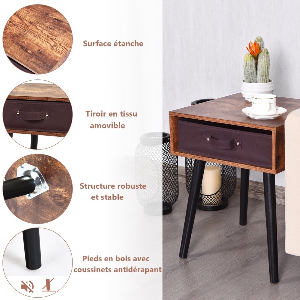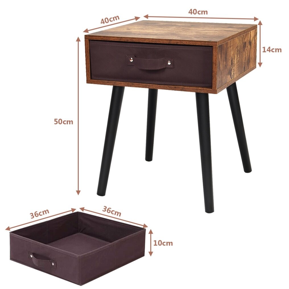 And the unique structure and solid wood legs offers powerful supports and high weight capacity. Besides, the large fabric drawer with handle can be opened and closed smoothly and quietly. You can use it to store some personal items or use it as a storage box in other places. The spacious tabletop can display some potted plant, photo frame, lamp, clock, etc, which help you keep the room clean and neat. What’s more, the vintage and elegant style allows the bedside table to fit other furniture in your bedroom, living room or anywhere you need. If you are looking for a nightstand like this, do not miss it.