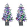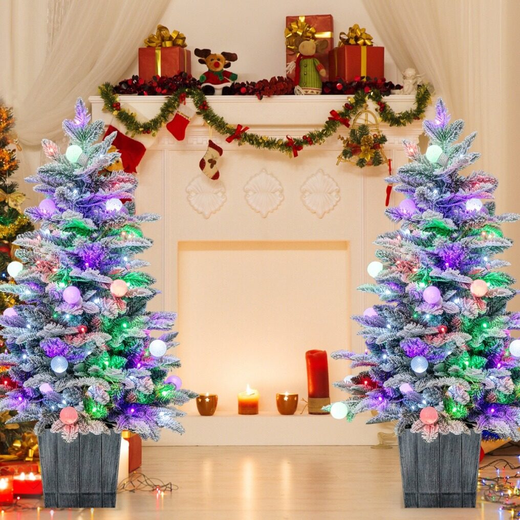 The mini lighted Christmas tree measures 40 x 110 cm (Dia. x H) and can be a perfect centerpiece for your seasonal celebrations. Boasting 148 lush branches with a mix of snow flocked PVC and PE leaves, this tree exudes a lifelike and enchanting appearance. Furthermore, it is adorned with 60 colorful LED lights and 20 colorful LED globe lights, which could illuminate your holiday decoration while creating a magical ambiance. For enhanced safety, our leaves are crafted of flame-retardant and odorless PVC and PE material, and the tree is supported by a stable base with built-in cement, which is not easy to wobble or tip over. From intimate gatherings at home to festive displays in offices or storefronts, our tree could bring joy and warmth to various occasions!