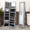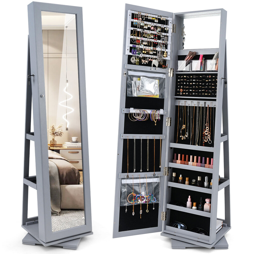 360° Rotatable 2-in-1 Lockable Jewelry Cabinet with Full-Length Mirror-Gray