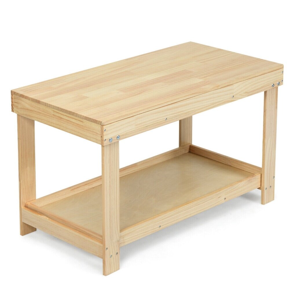 Made of durable natural pine wood, this table is non-toxic and harmless with long service life. Featuring a removable tabletop, it can be used for building blocks, as well as for daily activities such as learning, painting, and eating.