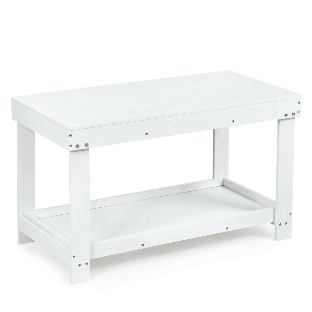 ● Double Storage Space: There is a built-in storage space under the desktop, which can be used to store small toys such as building blocks. The open storage shelf below is suitable for books, stationery, storage basket, etc. It's also worth mentioning that the shelf can be removed as needed.
